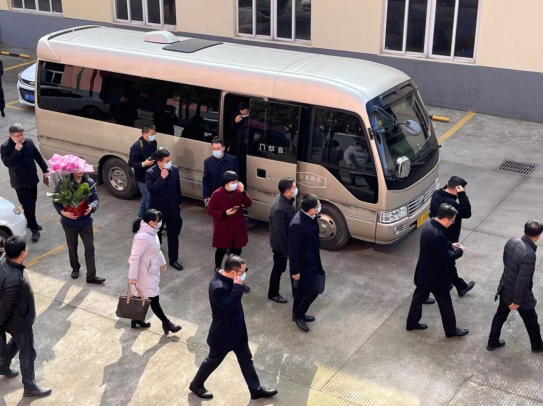 2022年2月10日上午11時許,泰州市羞羞视频com.入口區(qū)區委書記孫群(qún)書記等(děng)領(lǐng)導一行來到(dào)我司進行走訪調研,針對我司年度發展規劃提出指導性意見,我司董事長(zhǎng)丁克芳先生及董事會成員陪同視(shì)察!